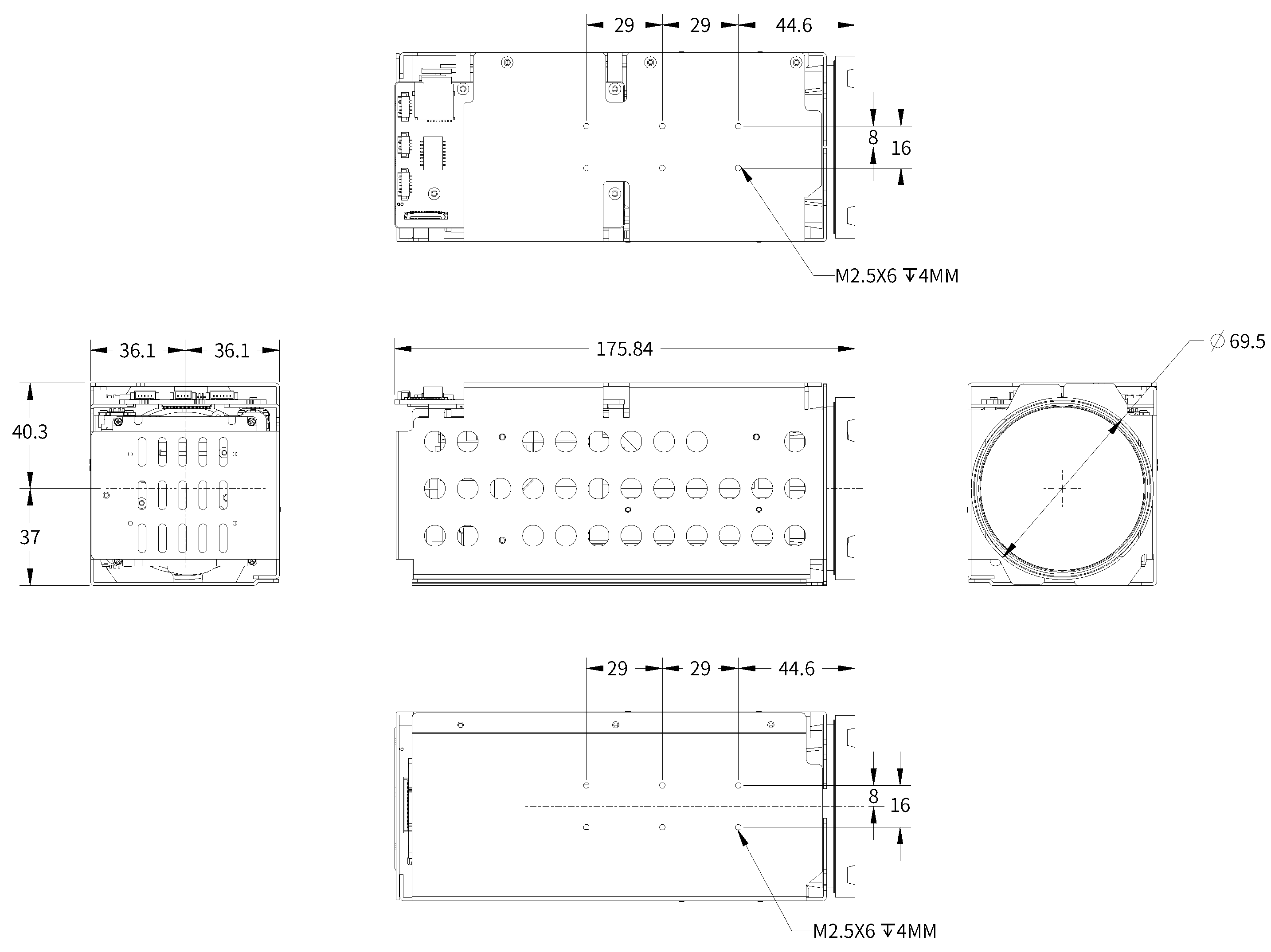 4Pin Ethernet -portti, 6Pin Power & UART -portti, 5 -pin Audio Port. 30Pin MIPI |